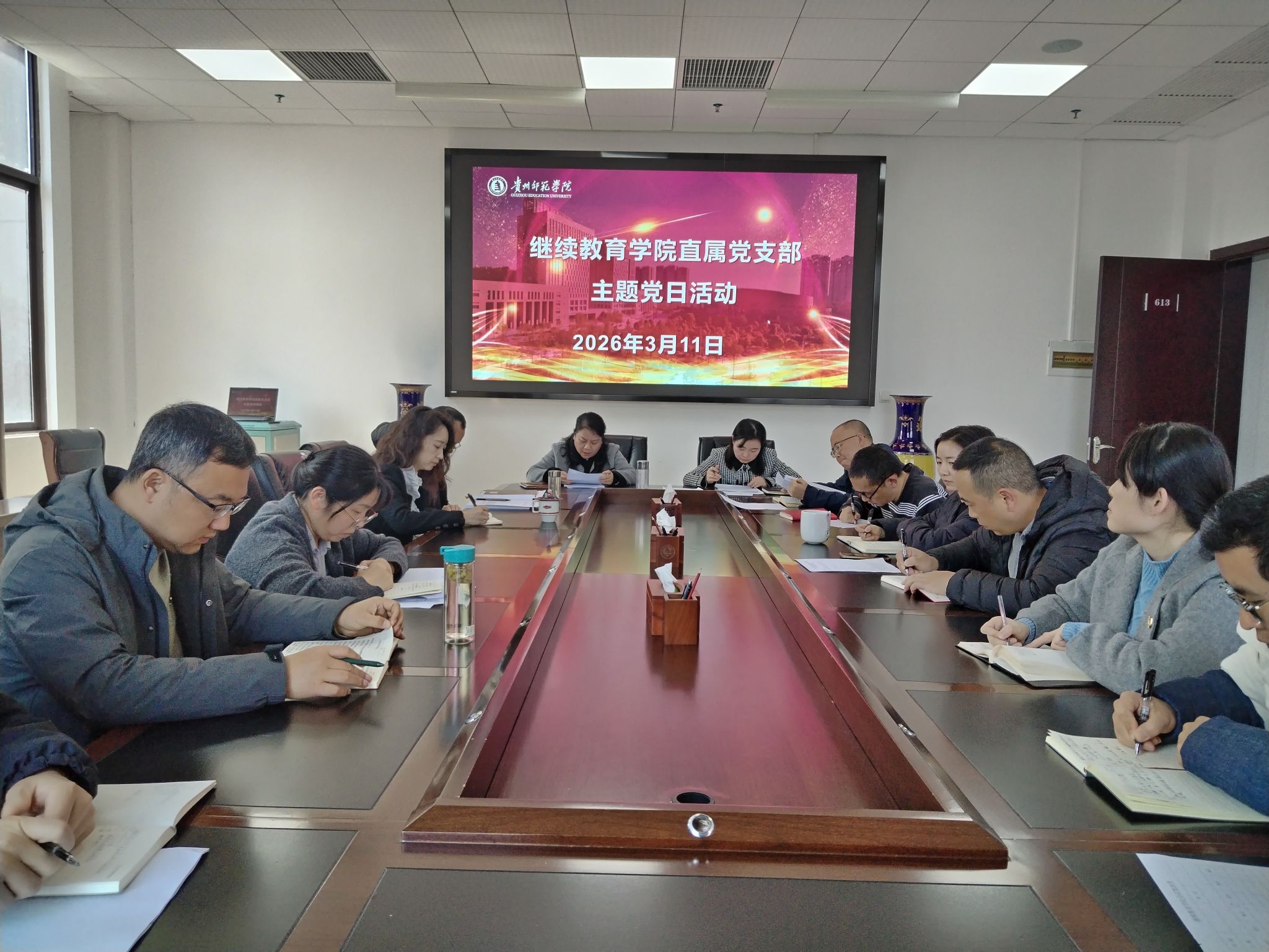 按照学校要求,3月11日下午,继续教育学院直属党支部在学院613会议室召开树立和践行正确政绩观学习教育部署会暨主题党日活动,对学院的学习教育工作进行部署。学校统战部部长、继续教育学院院长张婷出席会议。全体党员参加会议。直属党支部书记韦丹主持会议。