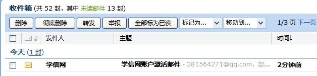 5、在你的邮箱收件箱里找到名叫“学信网”的邮件,让后打开它。