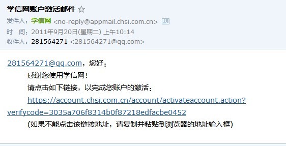 6、点击“请点击如下链接,已完成您账户的激活”下面的网址。