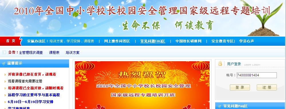 2010年校园安全管理国家级远程专题培训通知附件登陆注册操作指南